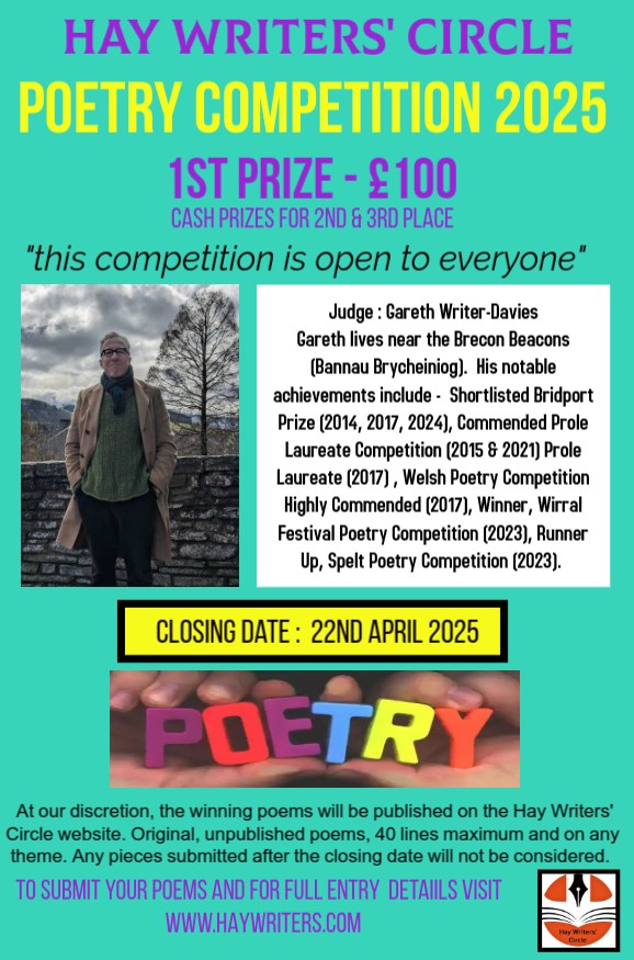Submissions are now invited for the annual Hay Writers’ Circle Poetry Competition, and we are delighted to announce the judge for 2025 is the remarkable, Gareth Writer-Davies. The theme this year is entirely open and we hope to receive a wide variety of poems and poetry styles for this competition.
