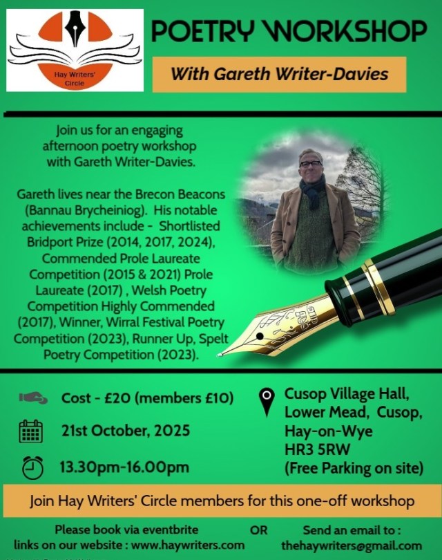 We are delighted to announce details of a one-off Poetry Workshop with Gareth Writer-Davies.