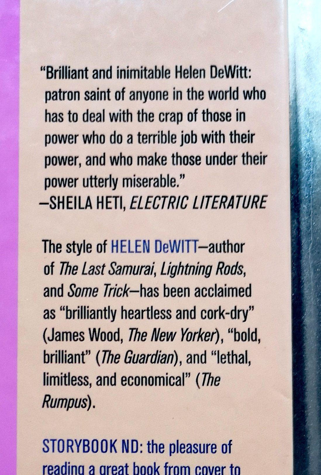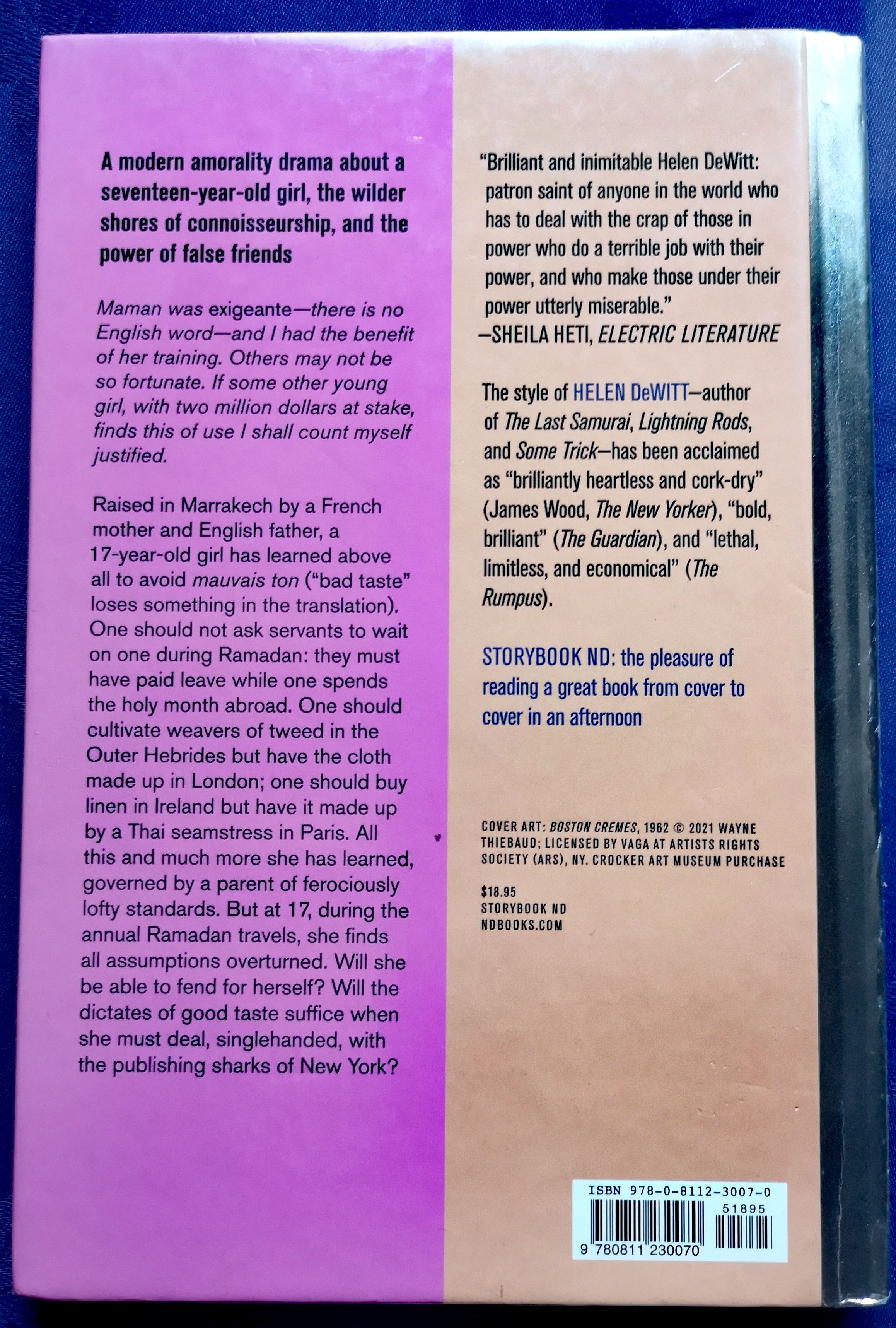 This is exactly where I found myself with The English Understand Wool by Helen Dewitt. It’s a superbly crafted, dark-humoured, satirical book. It subtly takes aim, among other things, at what is classed as ‘etiquette/connoisseurship’ or acting with ‘good form’, (“mauvais ton”). It also takes a well-mannered swing at the commercial deeds/misdeeds of the publishing industry. The reader is constantly being asked, what is good or not good, what is legal or illegal, what makes a victim, and what does it mean to me victimised.