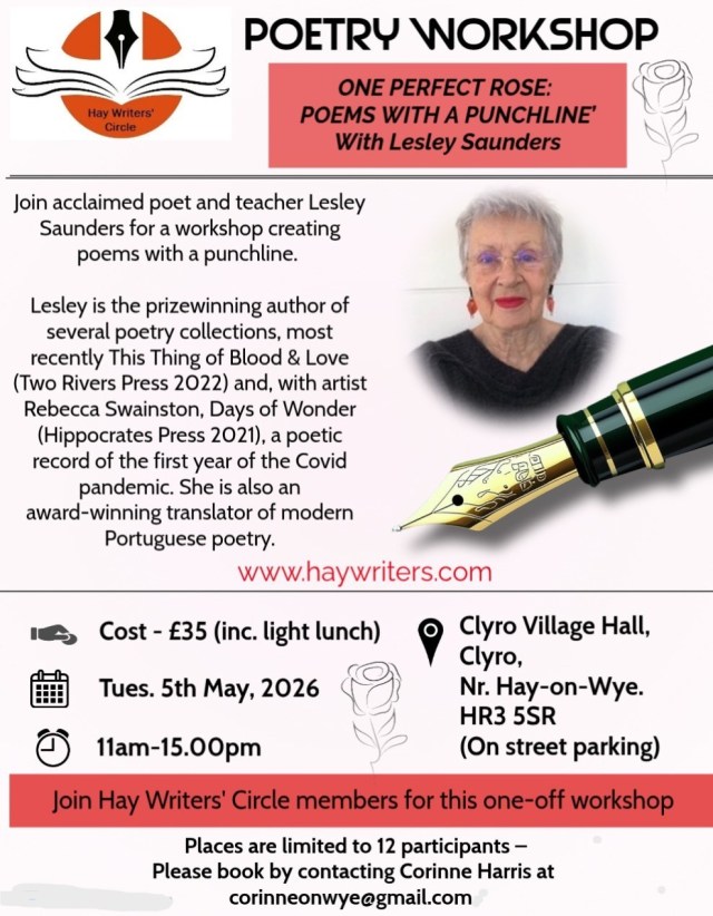 Please book your place via email to HWC Chair, Corinne Harris on : corinneonwye@thehaywriters