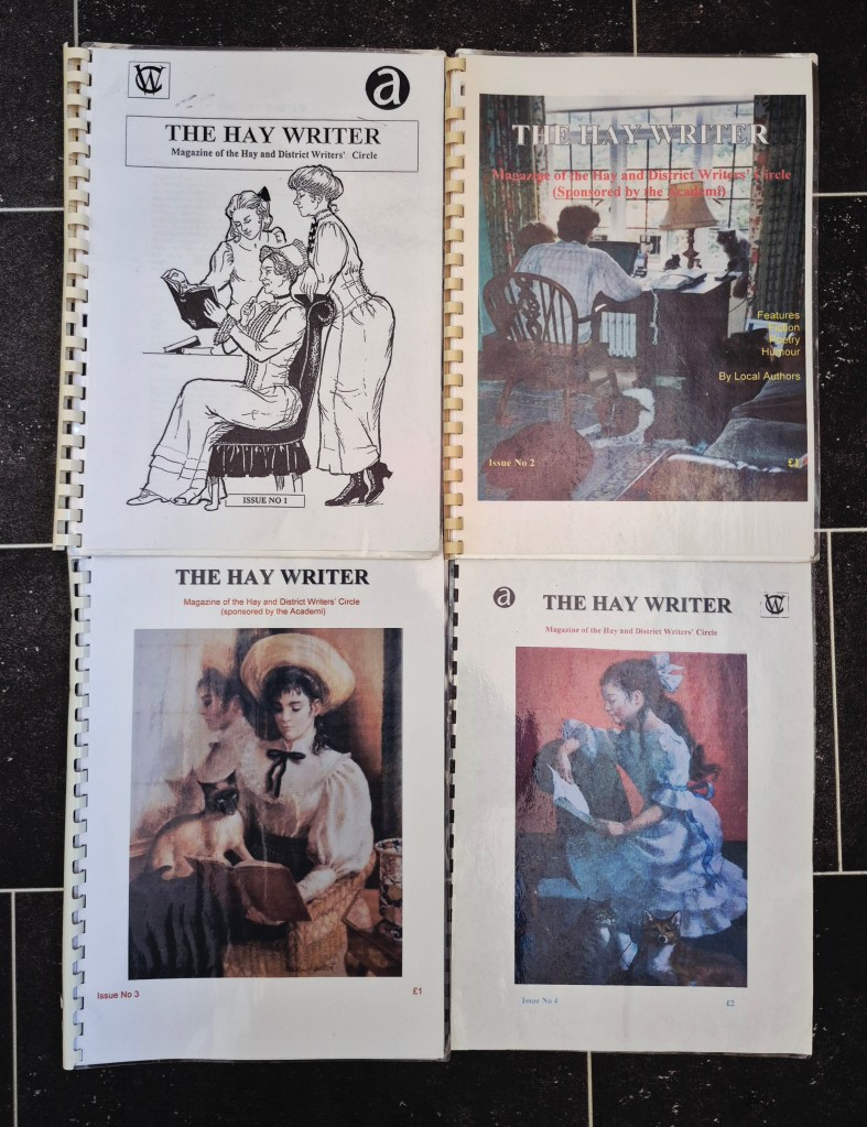On a recent visit to see the wonderful Lynn Trowbridge, I was handed a number of historical Hay Writers’ Circle publications. As many of you know, Lynn, one time member and Chairperson of HWC for over 17 years was keen, like the chairs before her, for all writers to have their work in print. The magazines were sold locally raising much needed funds for the group back then, spending the proceeds on professional workshops to improve writing skills and techniques.