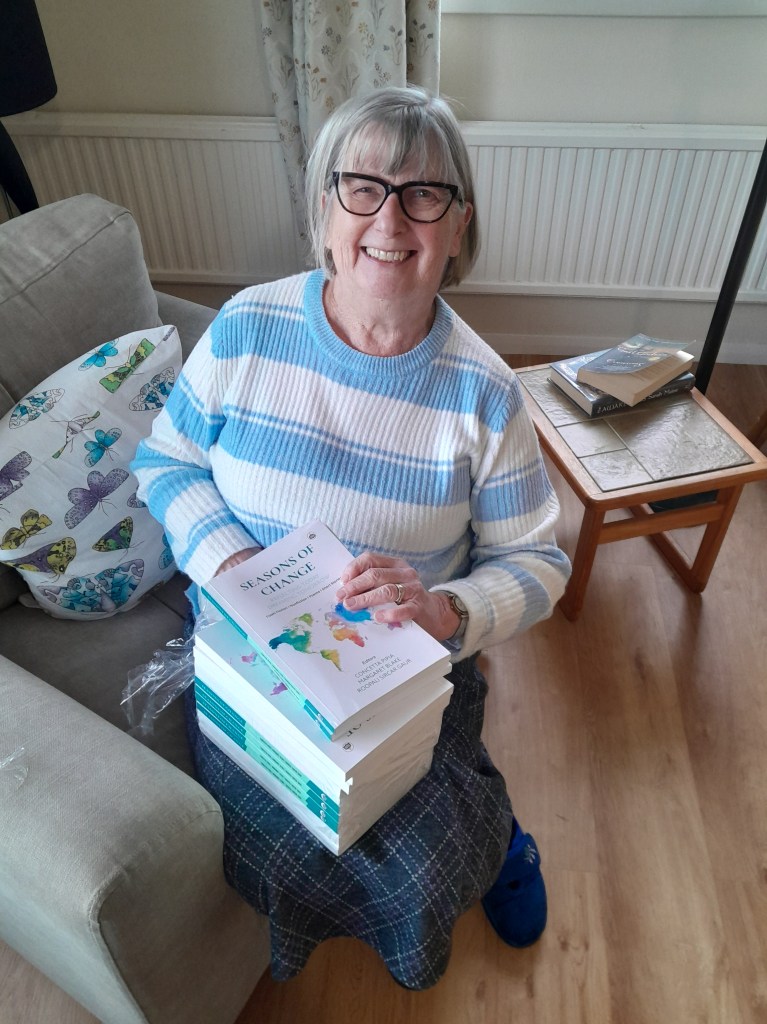 Her first poetry pamphlet “Here, There and Everywhere” was published in late 2023 and she is working on a second pamphlet of poems and drawings to be published later this year.